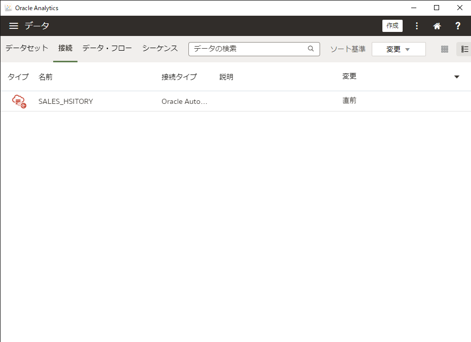 接続が成功すると、接続一覧に SALES_HISTORY が表示されます。