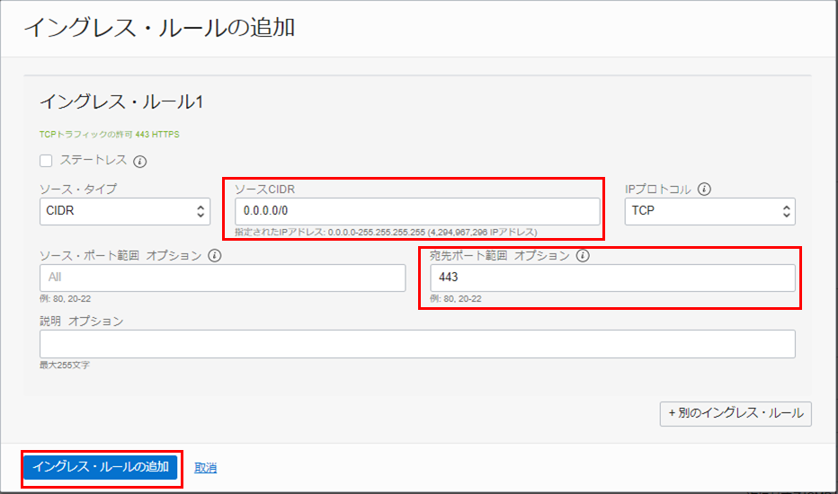 以下のように設定します。その他の入力項目はデフォルトのままにします。
