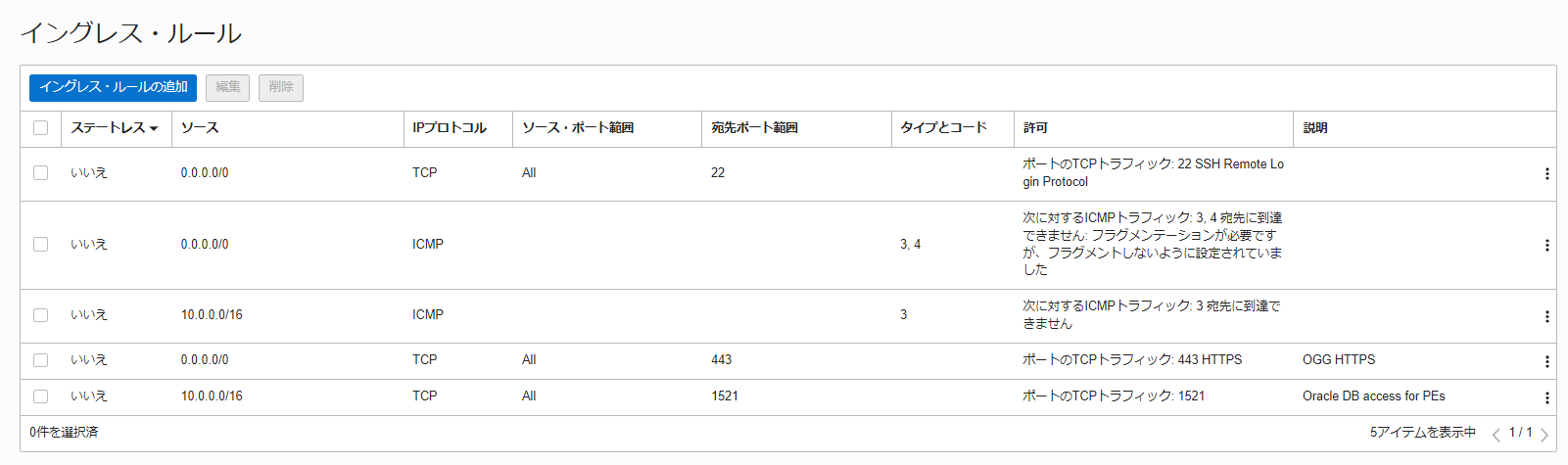 セキュリティリスト の一覧から Default Security List for VCN名 を選択します。