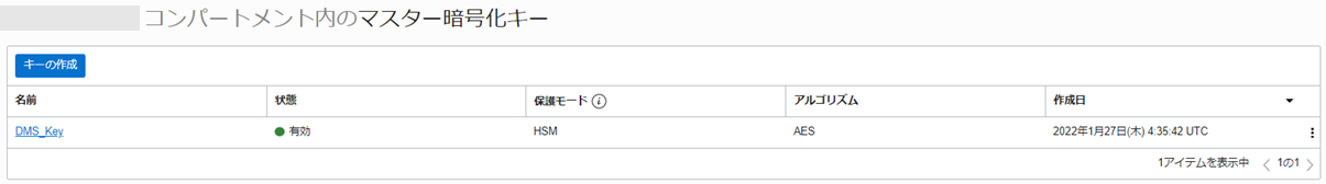 作成したボールトをクリックし、 マスター暗号化キー で キーの作成 をクリックします。