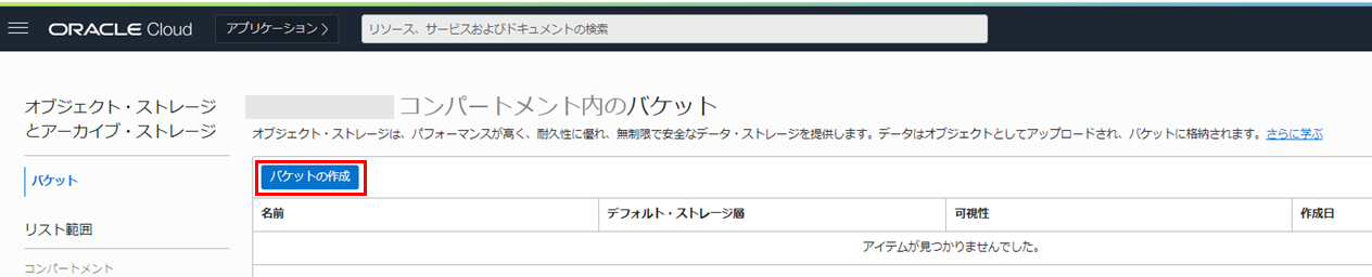 移行で使用する空のオブジェクト・ストレージ・バケットを作成します。