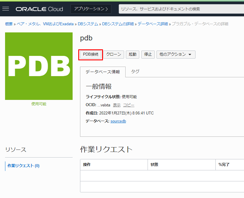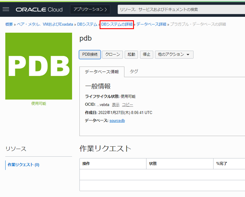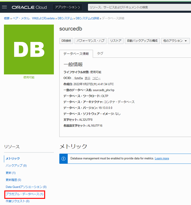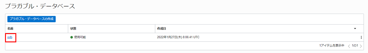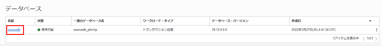 ソース・データベースのプラガブル・データベース名をクリックします。