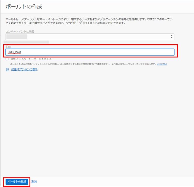 ボールトの作成 ダイアログで、任意の名前を入力します。