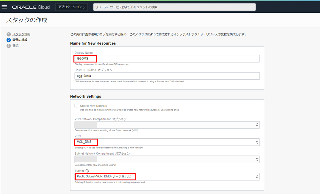 - VCN Network Compartment - 使用したいVCNが配置されているコンパートメントを選択します。