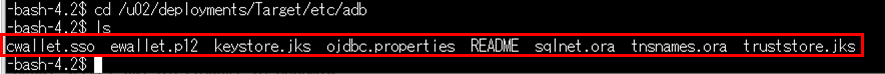 /u02/deployments/deployment_name/etc/adbディレクトリに配置されていることを確認します。(deployment_nameは1. Oracle GoldenGate Microservicesのインストールの5.で設定したターゲット・データベースのデプロイメント名です。)例: