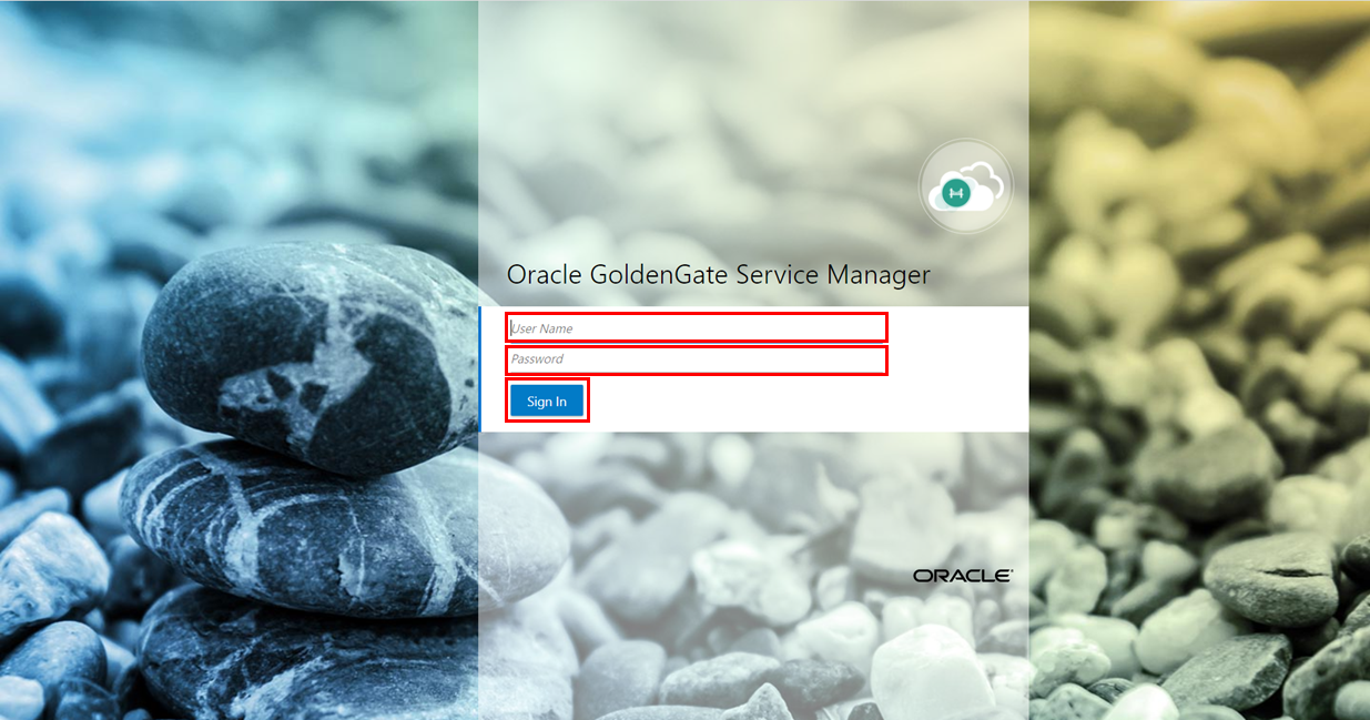 Oracle GoldenGate Service Manager にログインします。(User NameとPasswordは4.でコピーしたデフォルトのものを使用します。)