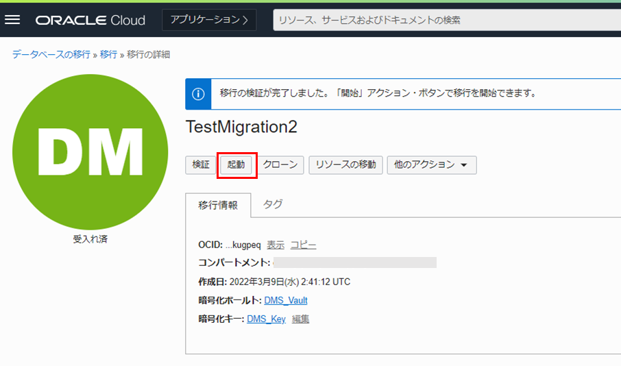 詳細については、Oracle Cloud Infrastructure Database移行サービスの使用 - 4 移行の管理 - 検証オプションの構成 をご参照ください。