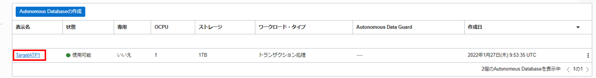 - Deployment 2 - Autonomous Database Instance - ターゲット・データベースのインスタンスを選択します。
