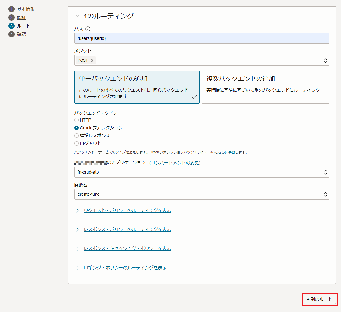 [4のルーティング]セクションで次を指定して、[別のルート]をクリックします。