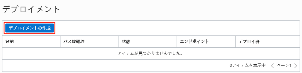 [リソース]で[デプロイメント]をクリックし、[デプロイメントの作成]をクリックします。