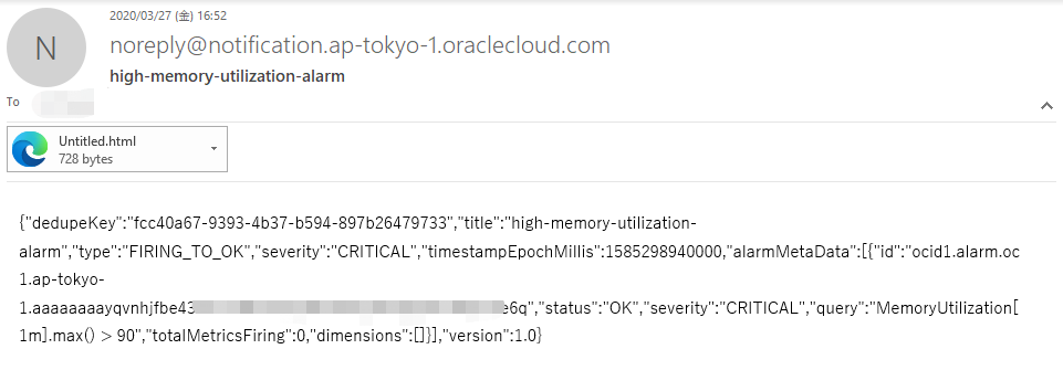 こちらは受信したアラームメールのサンプルです。