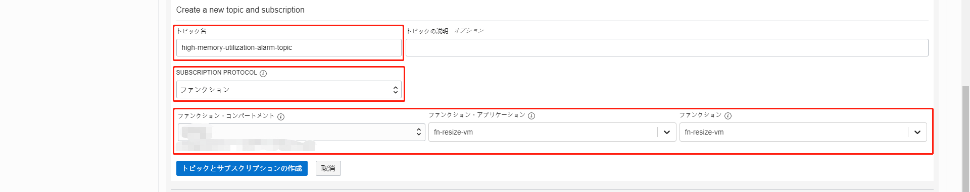 トピックとファンクションを既に作成している場合は、新しいトピックを作成する代わりに、ここでそのトピックを選択できます。 -