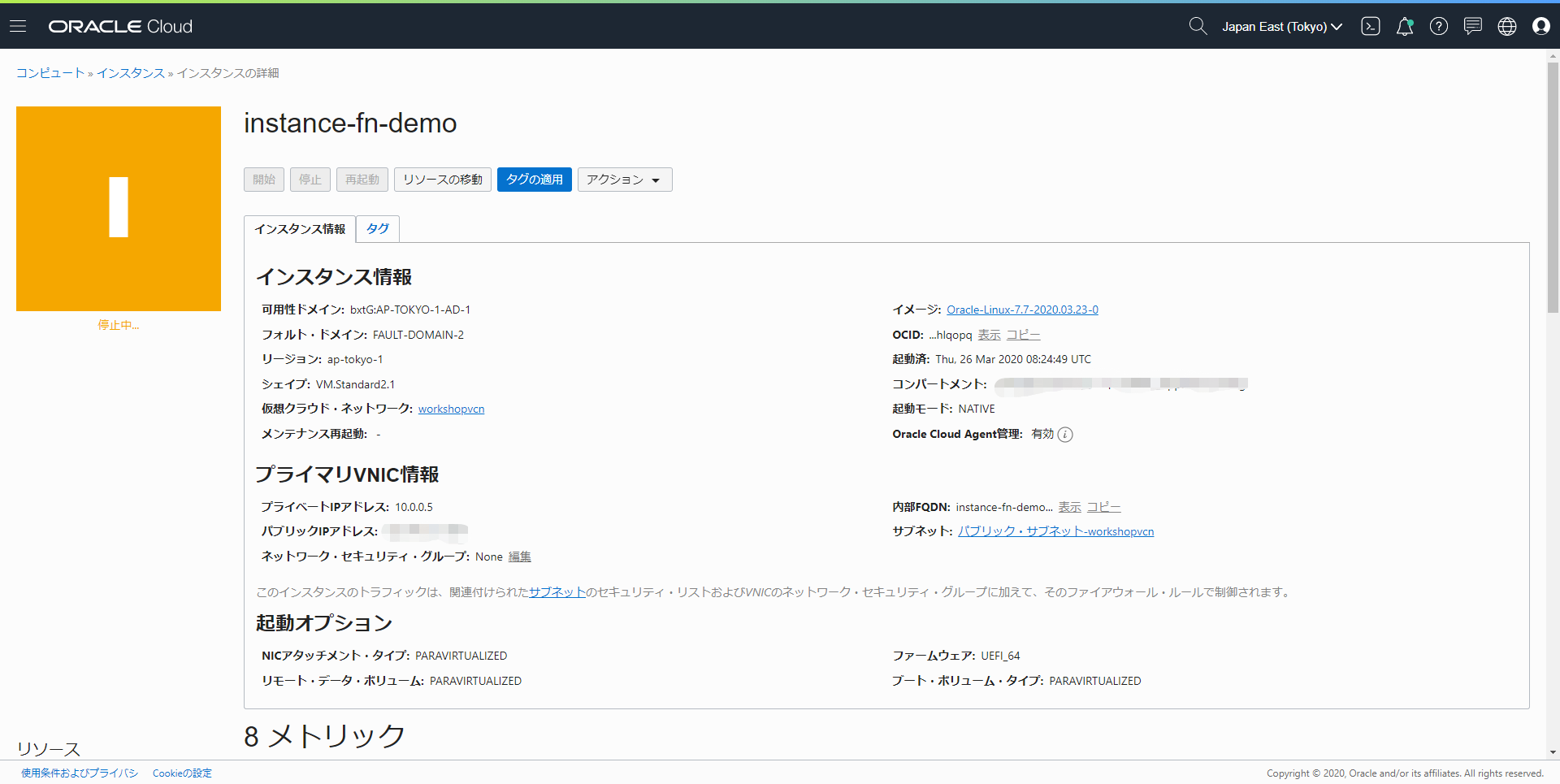 このステップでは、Fn Projectハンズオンで作成したコンピュートインスタンスを利用して動作確認を行います。