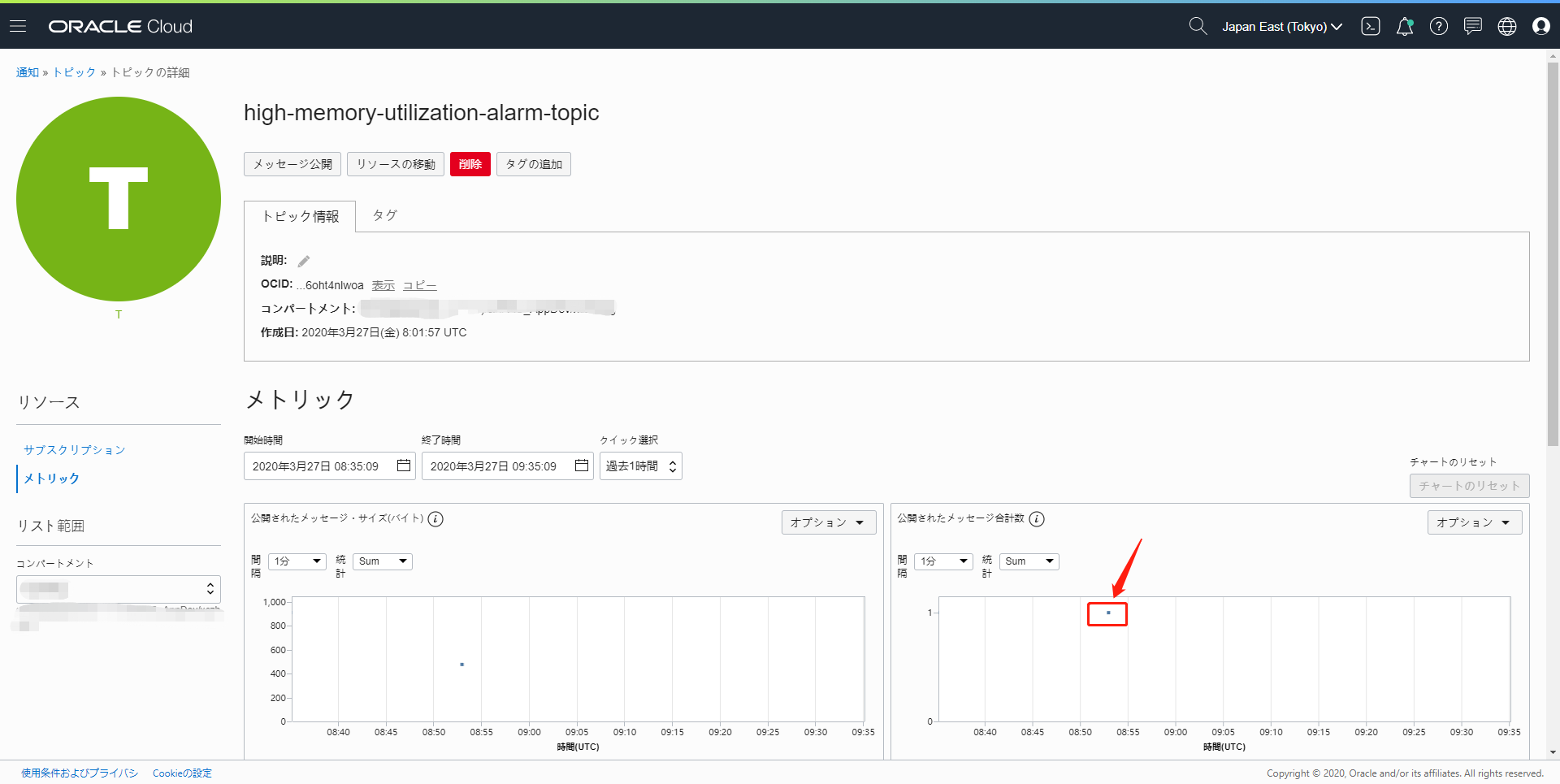 次に、OCIコンソールを使用して、アラームの設定時に作成したトピックにオプションの電子メールサブスクリプションを追加します。