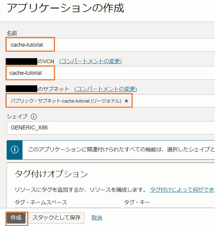 - 仮想クラウドネットワーク:cache-tutorial
