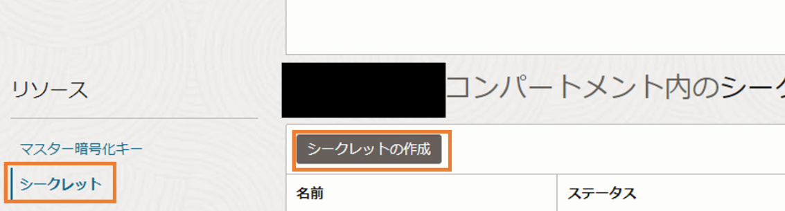 次にシークレットを作成します。左下のリソース一覧から、「シークレット」を選択し、「シークレットの作成」を選択します。