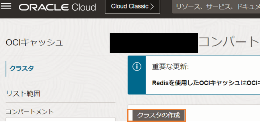 以上でOCI Cacheの作成は完了です。