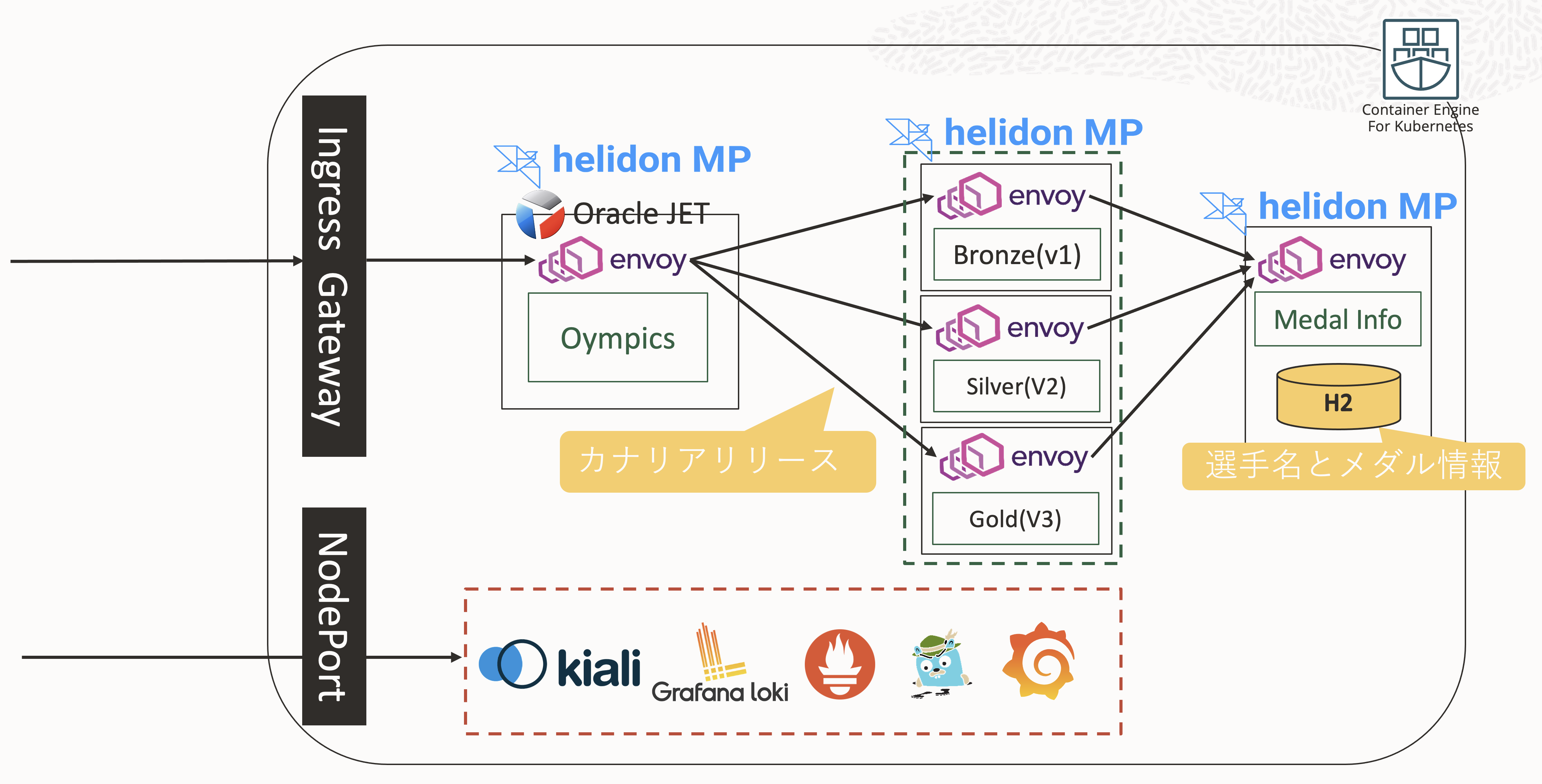 このハンズオンでは、Oracle Container Engine for Kubernetes(以下OKE)上に、マイクロサービスアプリケーションをデプロイします。そして、OSSのオブザバビリティツールを利用して、モニタリング、ロギング、トレーシングを実践的に学びます。