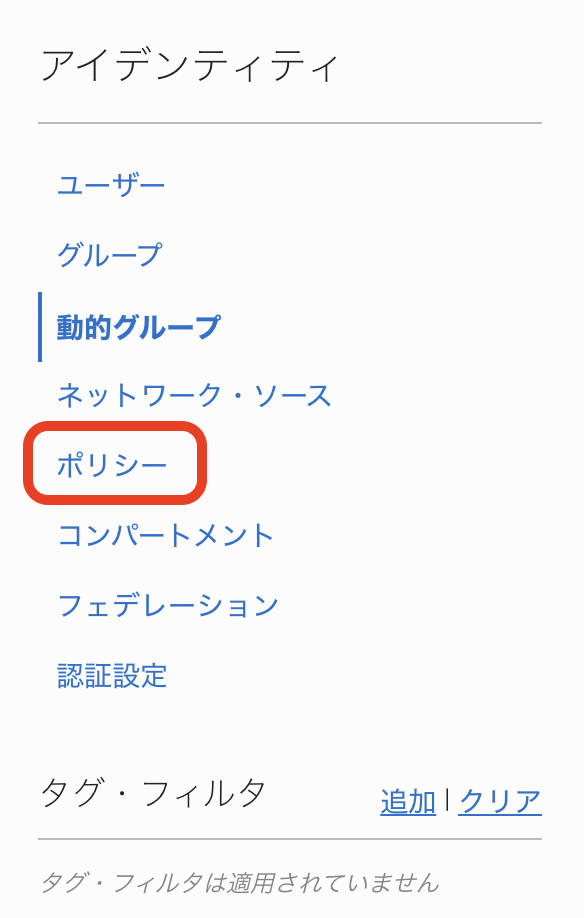 次に画面左側にあるメニューから「ポリシー」をクリックします。
