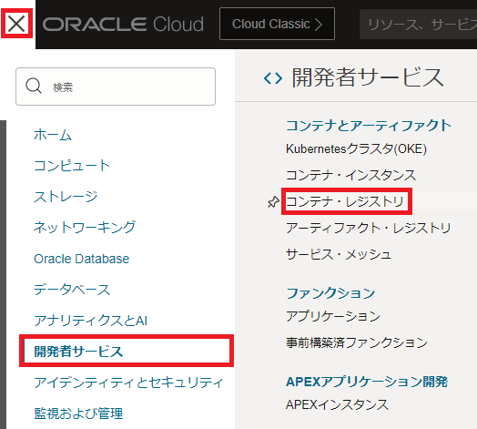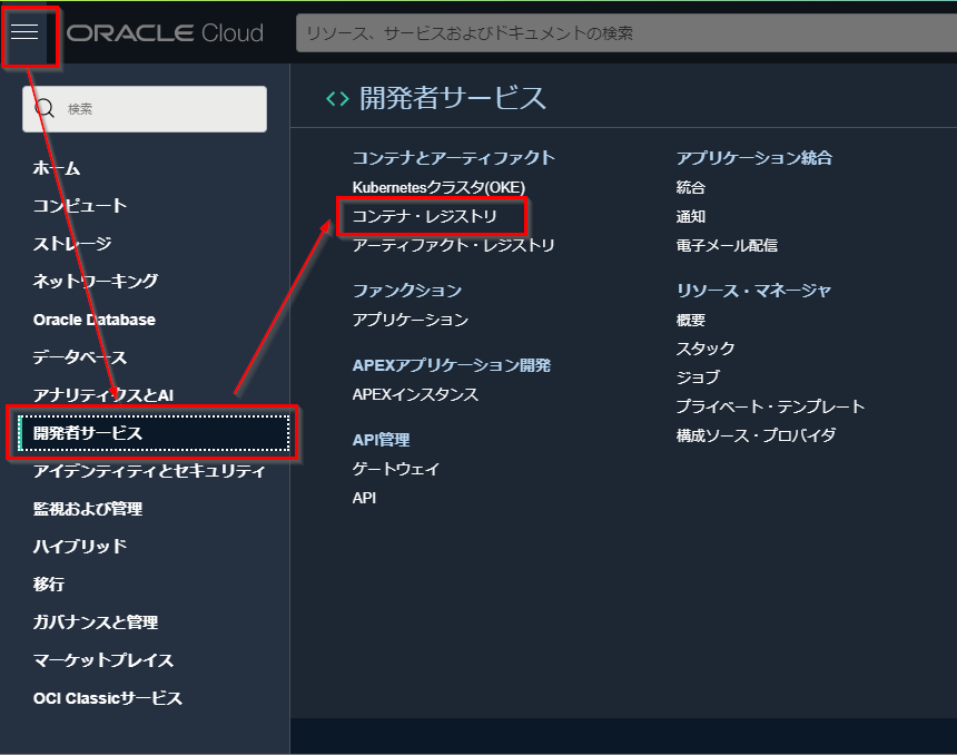 - Oracle Cloud Infrastructure Registry (OCIR): : フルマネージドなDocker v2標準対応のコンテナレジストリを提供するサービスです。