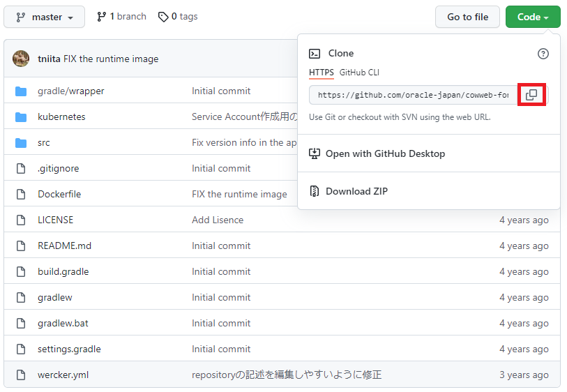 今回利用するサンプルアプリケーションは、oracle-japanのGitHubアカウント配下のリポジトリとして作成してあります。