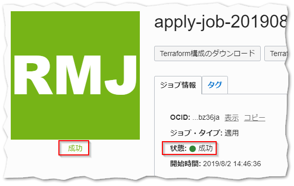 ジョブの状態が「成功」になったら、正常にジョブが完了しています。