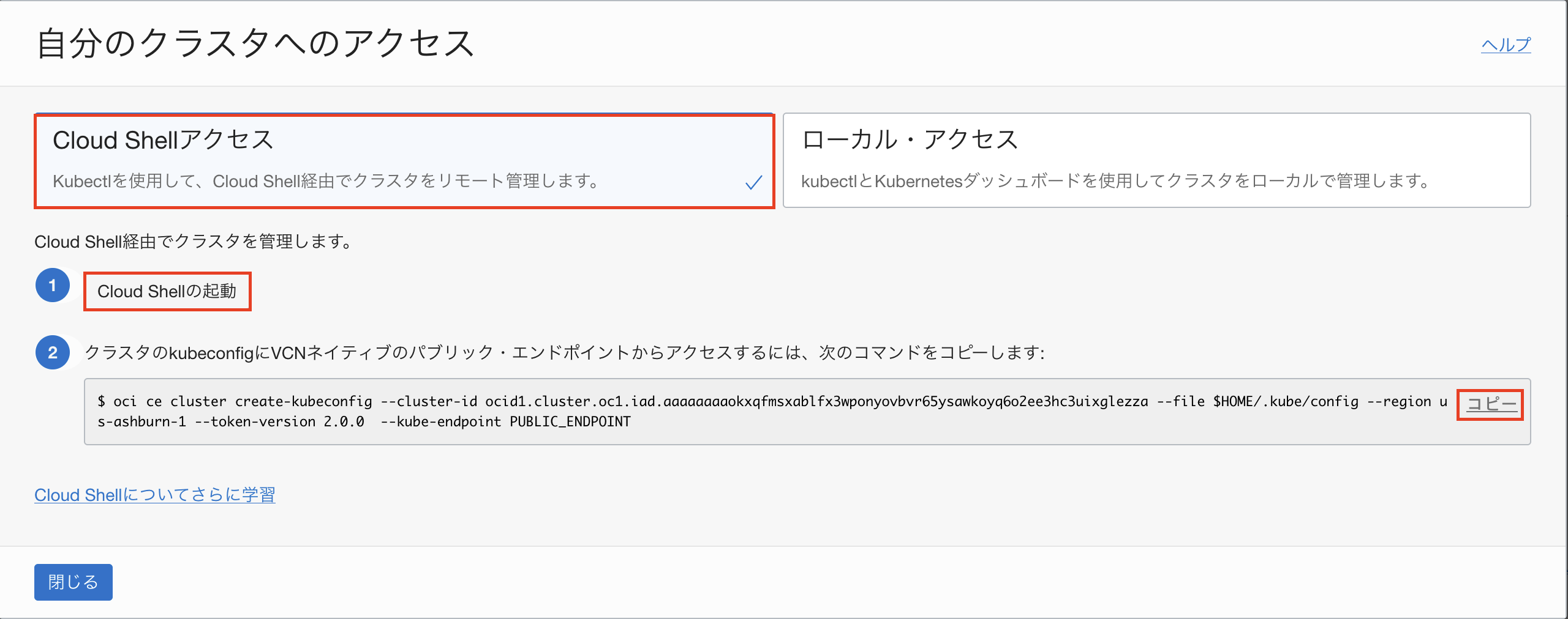 OKEへのアクセス方法は「Cloud Shellアクセス」と「ローカル・アクセス」の2種類が存在します。