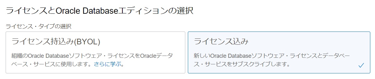「ライセンスとOracle Databaseエディションの選択」は「ライセンス込み」を選択します。