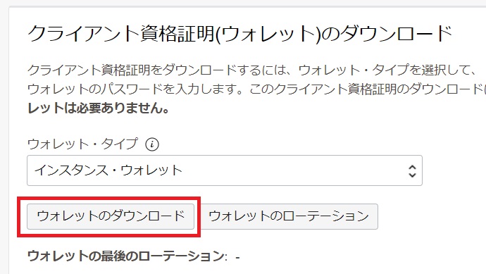 「ウォレットのダウンロード」をクリックします。※この後の手順で利用するためにダウンロードしておきます。