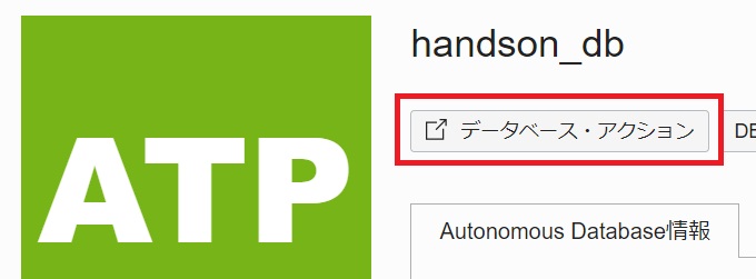 データベース・アクションをクリックします。