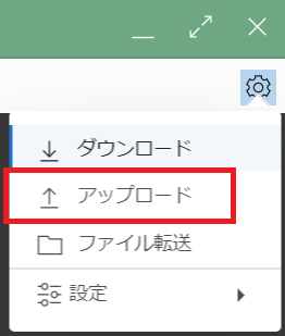 Cloud Shell上の歯車アイコンをクリックし、「アップロード」をクリックし、ダイアログから