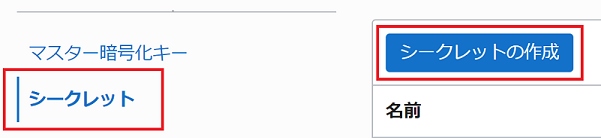 「シークレット」をクリックし、「シークレットの作成」をクリックします。