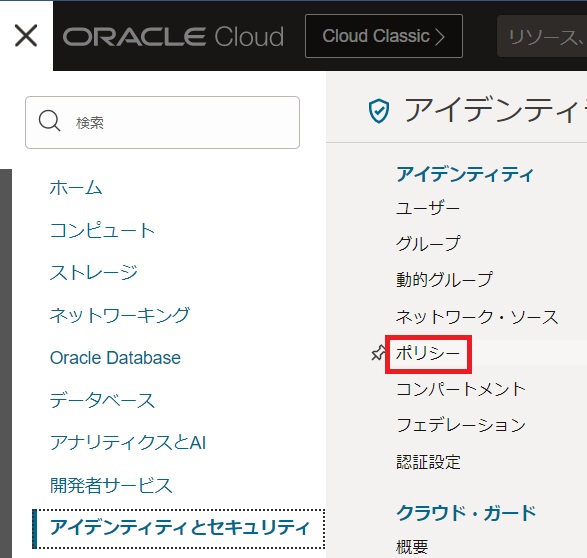 左上のナビゲーション・メニューを展開して、「ポリシー」を選択してください。