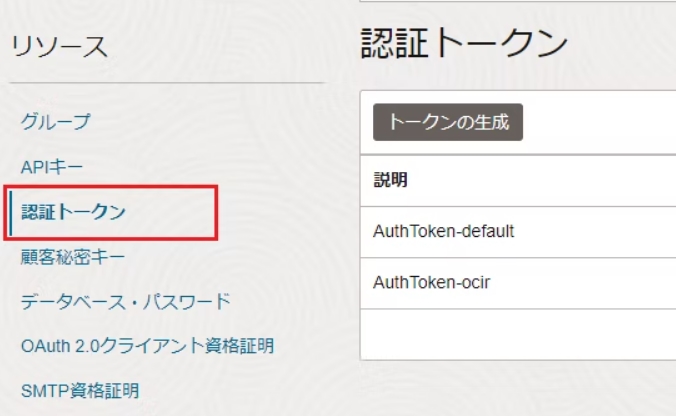 左メニューより「認証トークン」を選択し、「トークンの作成」からトークンを作成してください。