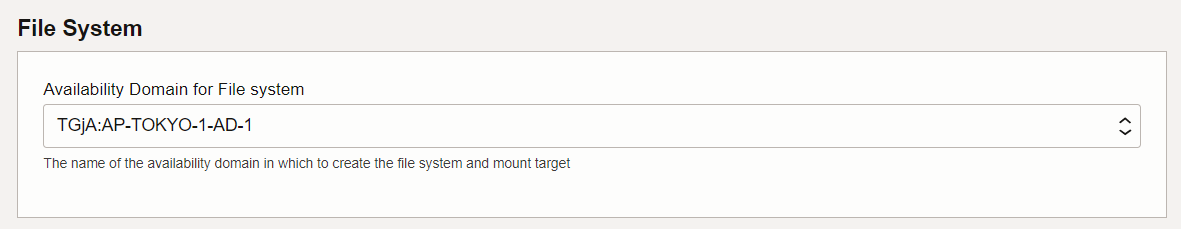「File System」は任意のAvailability Domainを選択します。下は一例です。