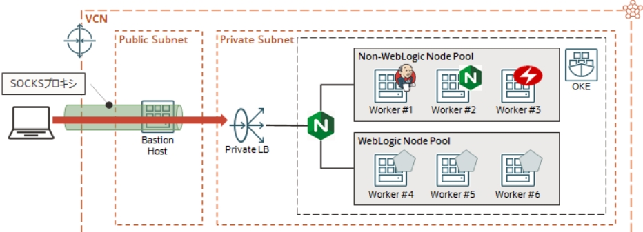 ssh -D <SOCKSプロキシ用のポート> -fCqN -i <SSH秘密鍵のパス> opc@<踏み台ホストのIP>