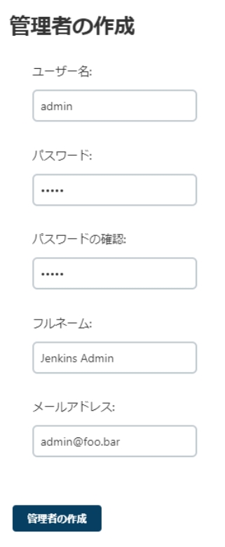 最初にJenkinsコンソールにアクセスした時には、管理アカウントの作成を行う必要があります。