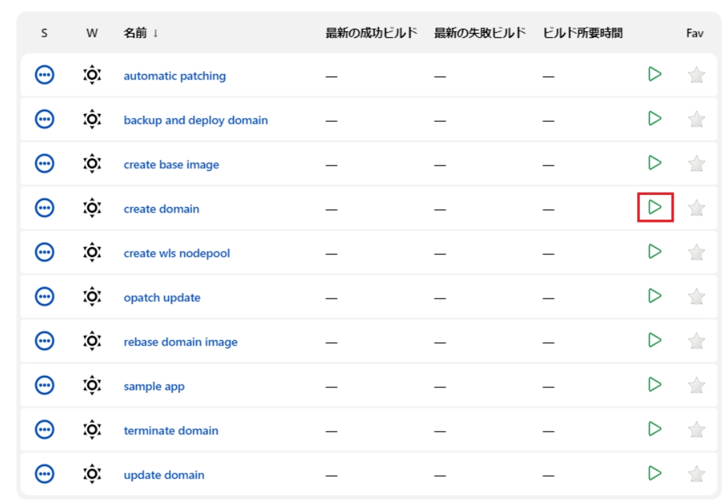 ドメイン作成のためのJenkinsジョブを実行します。「create domain」のジョブを選択してください。