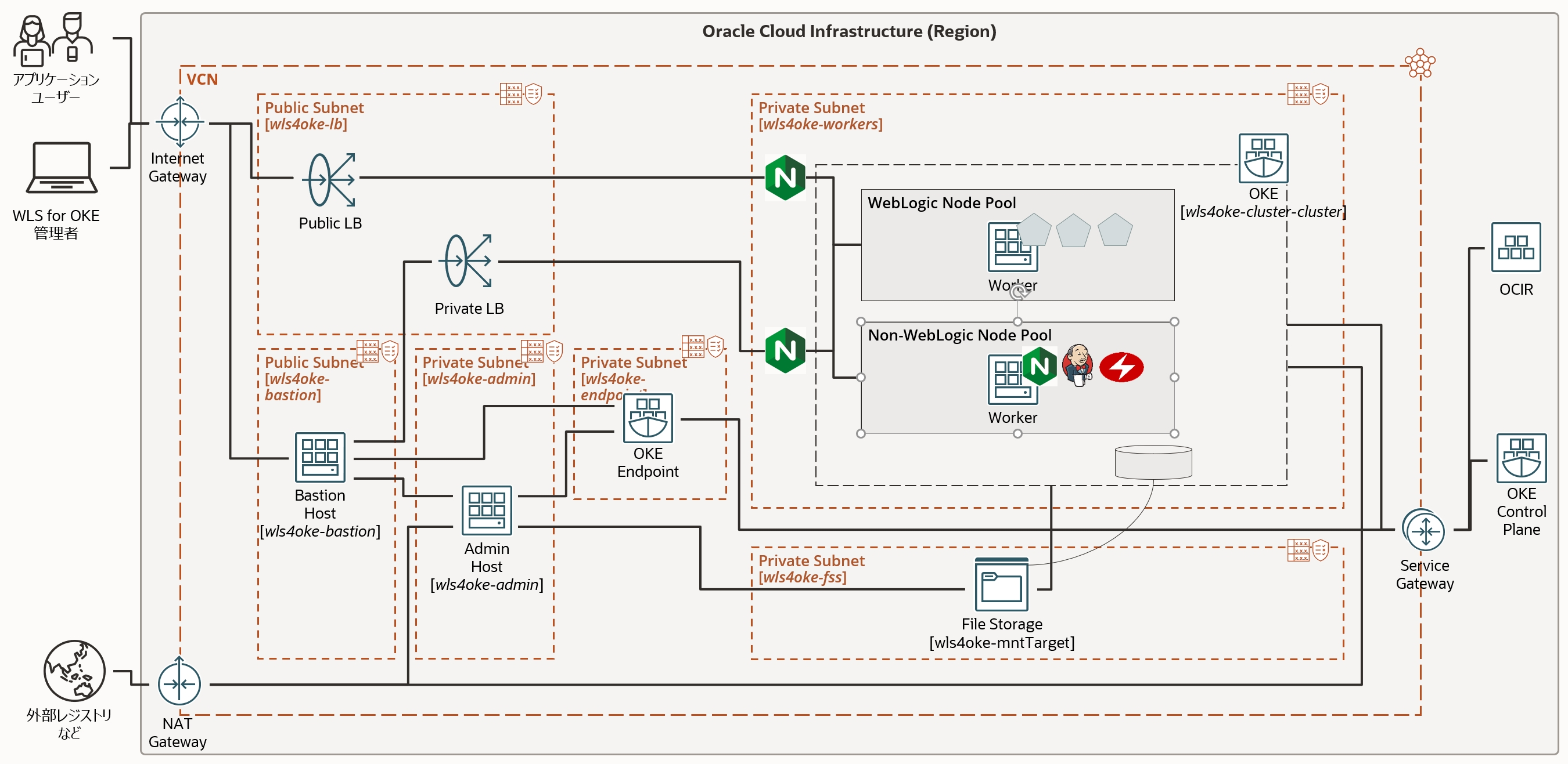WebLogic Server for OKEでは、様々なリソースが自動で構成されます。