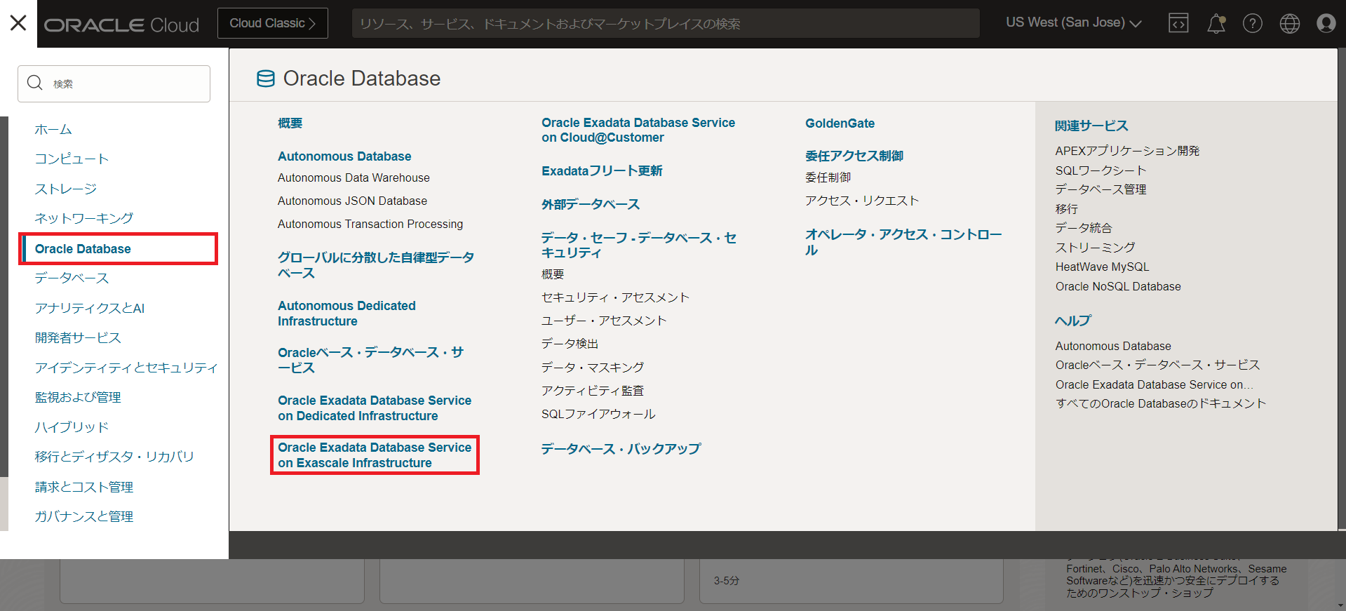 OCIコンソール・メニューから Oracle Database → Oracle Exadata Database Service on Exascale Infrastructure に移動します。