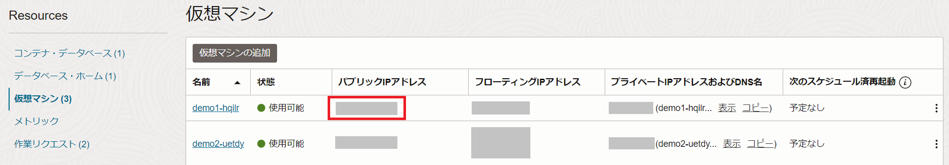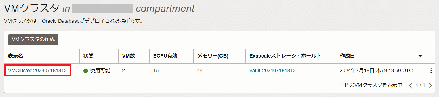 1. VMクラスタおよびデータベースの作成で作成したVMクラスタの表示名をクリックします。