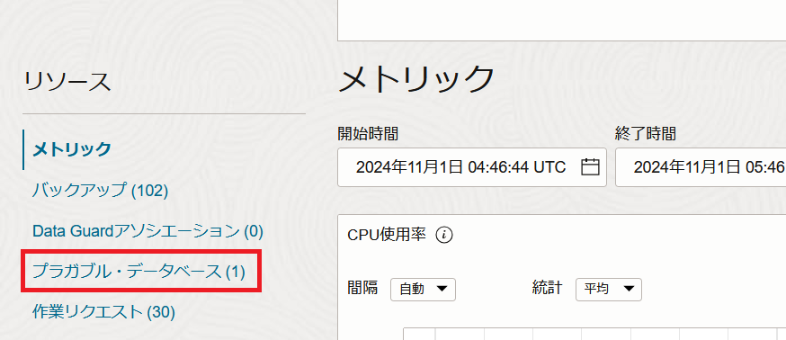 リソースの一覧からプラガブル・データベースをクリックします。