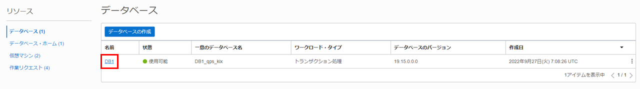 データベースの一覧から対象のデータベースの名前をクリックします。