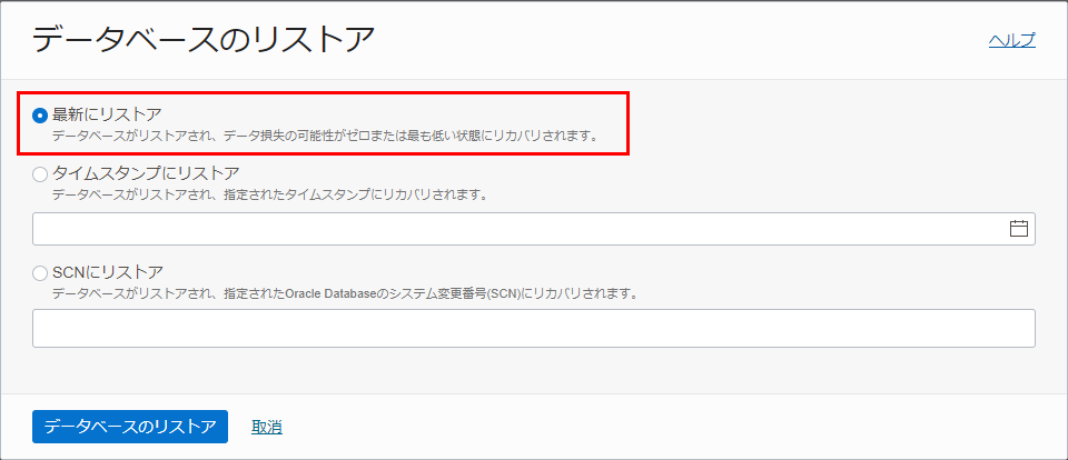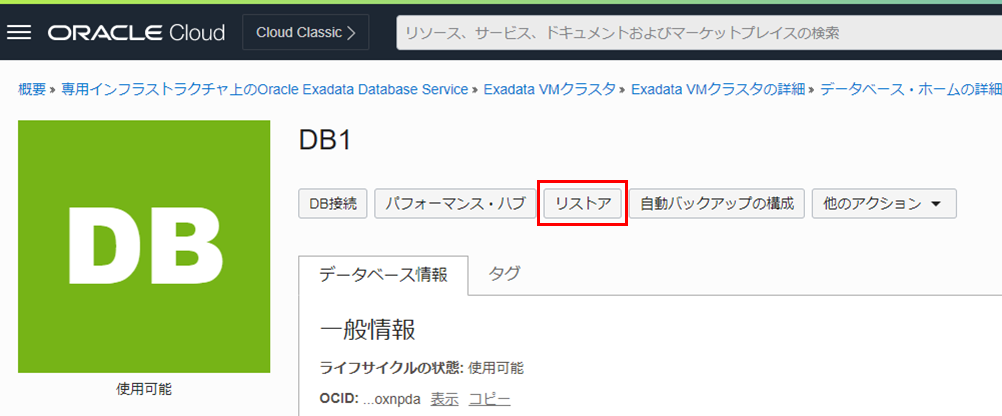 Oracle Cloud Infrastructure Exadata Database Service on Dedicated Infrastructure (ExaDB-D) では、自動バックアップ機能やオンデマンドバックアップにて取得したバックアップを利用する事で、最新時点やPoint in Time Recovery(PITR)の任意の時点まで復旧ができます。 また、バックアップ元のデータベースに対してリストアするだけでなく、別DBシステム上にリストアする事も可能です。 ここでは、OCI コンソールからリストアする手順についてご紹介します。