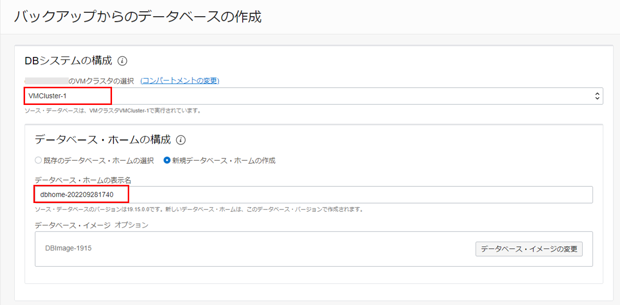- [コンパートメント名]のVMクラスタの選択 - リストア先のVMクラスタを選択します。