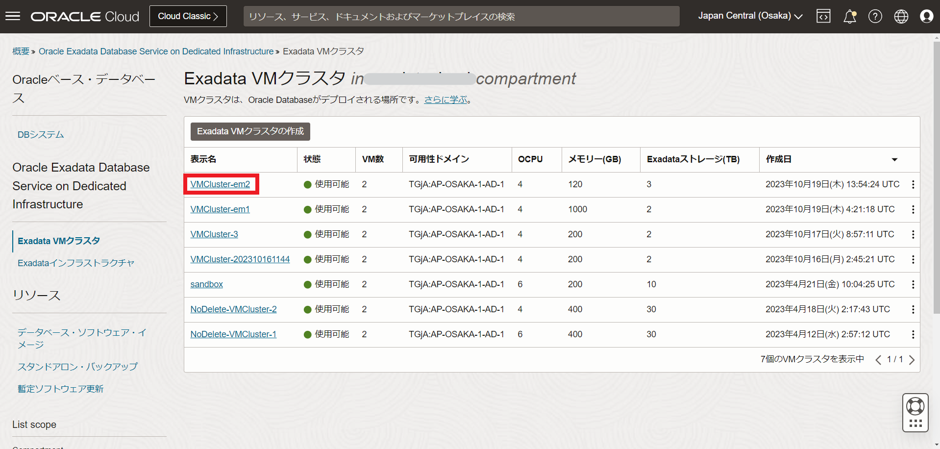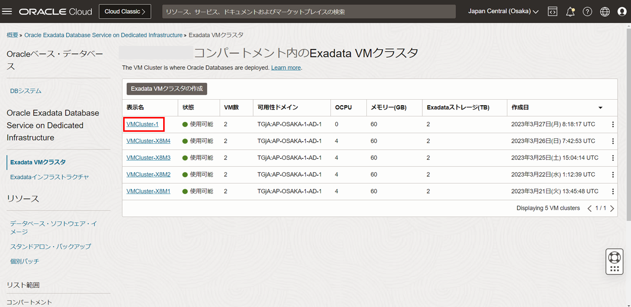 操作したいExadata VMクラスタの表示名をクリックします。