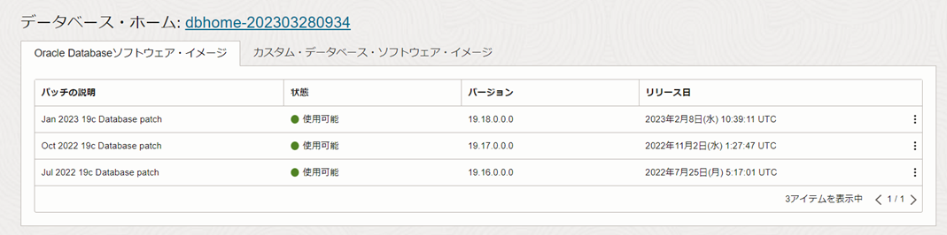 VMクラスタの状態が使用可能に切り替わり、パッチが成功すると、パッチの一覧から適用したパッチが消えます。適用したパッチはdbaascliを使用してロールバックできます。