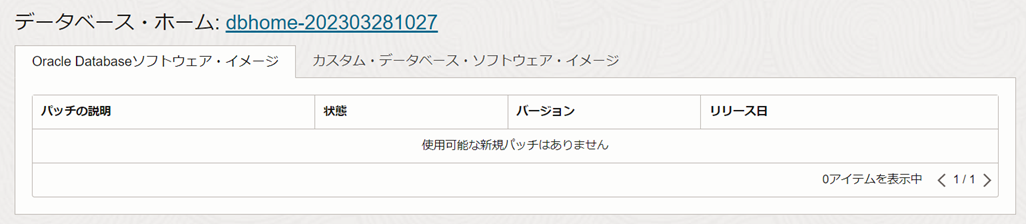 dbaascli patch tools listクラウド・ツールのバージョンが最新の場合は以下のようになります。この場合は、バージョンが最新のため、クラウド・ツール(dbaascli)のパッチ適用の作業は完了のため、4. OSのパッチ適用に進みます。