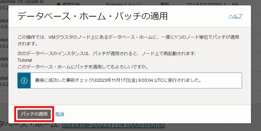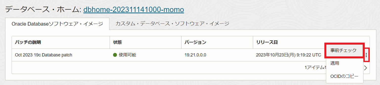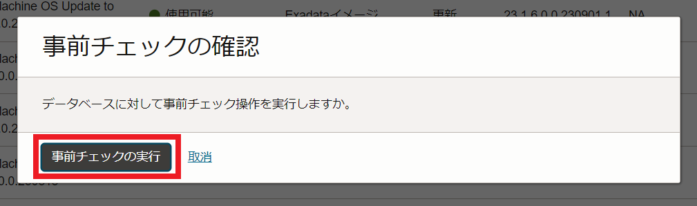 適用したいパッチの右のアクション・ボタンをクリックして、事前チェックの実行をクリックします。