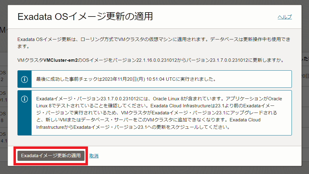 Exadataイメージ更新の適用ボタンをクリックします。